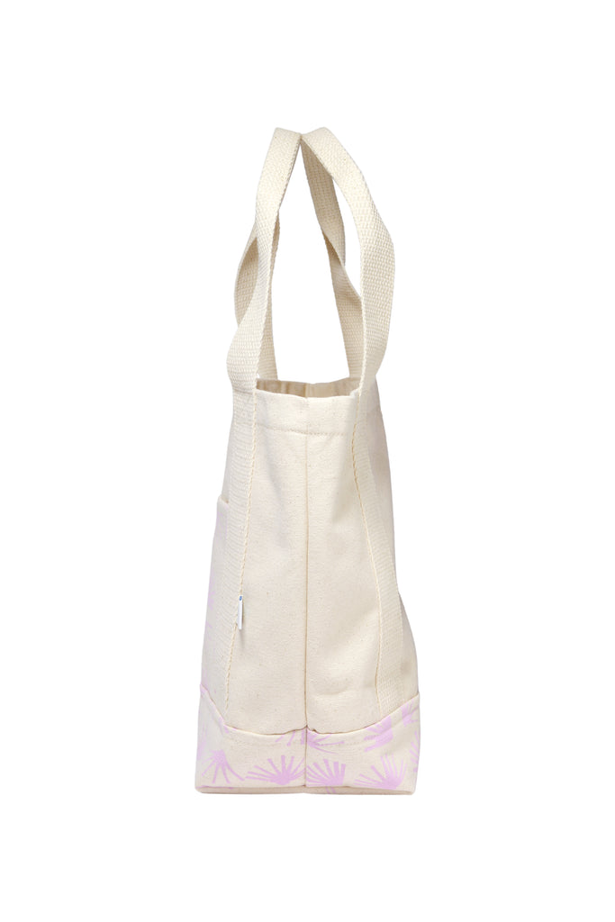 Sized at 12.5" wide by 11" tall with a 6" gusset and a 7.5" handle drop, this mini tote bag fits just right—never bulky, always ready. Made from 100% cotton canvas, it features a hand painted dot pattern that's screenprinted in coral.