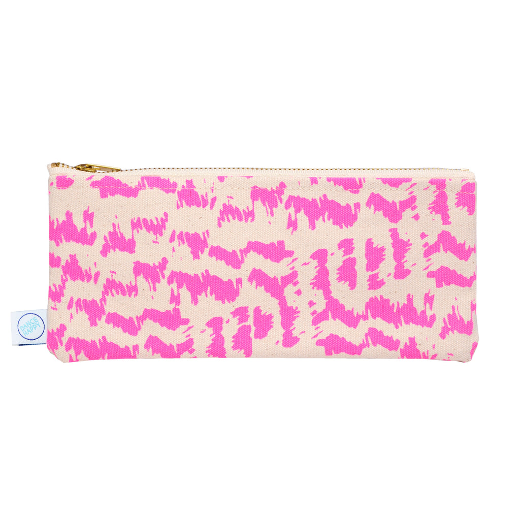 This cotton canvas pencil case is here to keep your pens, pencils, or whatever small essentials you need, neat and easy to grab. Made from durable 15 oz cotton canvas and screenprinted with a hand-drawn animal print pattern, it’s sturdy enough for everyday use and stylish enough to make you actually want to stay organized. The zip-top closure keeps everything secure, while the slim shape slides right into your bag without a fuss.